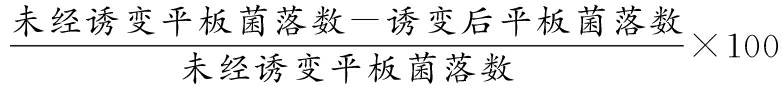 (2)137Cs γ-射线诱变。在浙江省农业科学院辐照中心进行,将培养6~8 h的菌体适当稀释后制备菌悬液,80%~90%致死率剂量照射。照射后的菌液经适当稀释处理涂布筛选平板,30 ℃培养1~2 d,选择较大单菌落进行发酵培养。