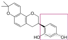光甘草定结构如下,红色方框部分结构与酪氨酸结构部分重合(对羟基苯酚)从结构推断出它的美白机制主要是通过抑制酪氨酸酶的活性,能显著减少黑色素的生成,从而达到淡斑美白的效果。