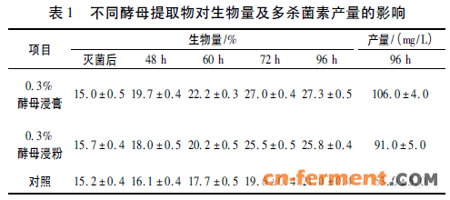 2.1.1 酵母提取物对生物量及多杀菌素产量的影响