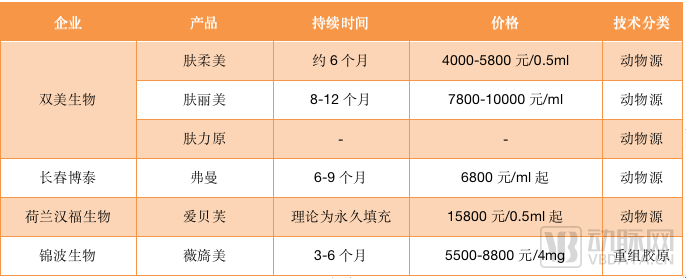 目前获国家药监局批准上市的胶原蛋白填充注射剂产品(数据来源:国信证券)