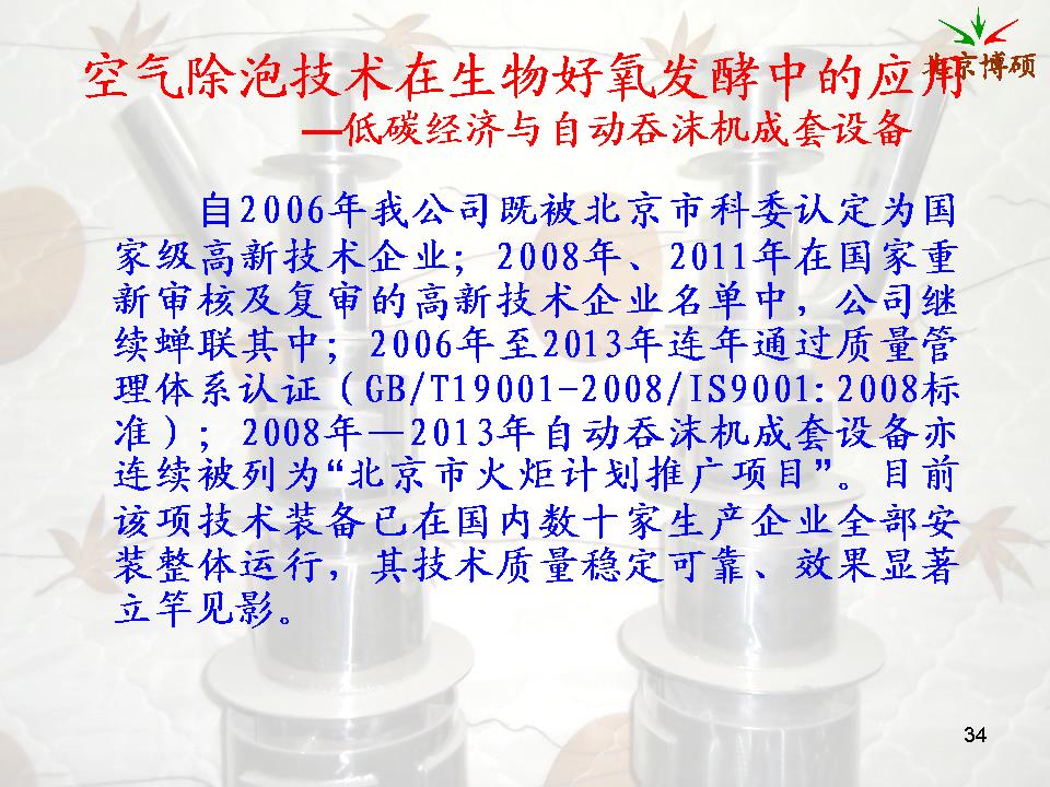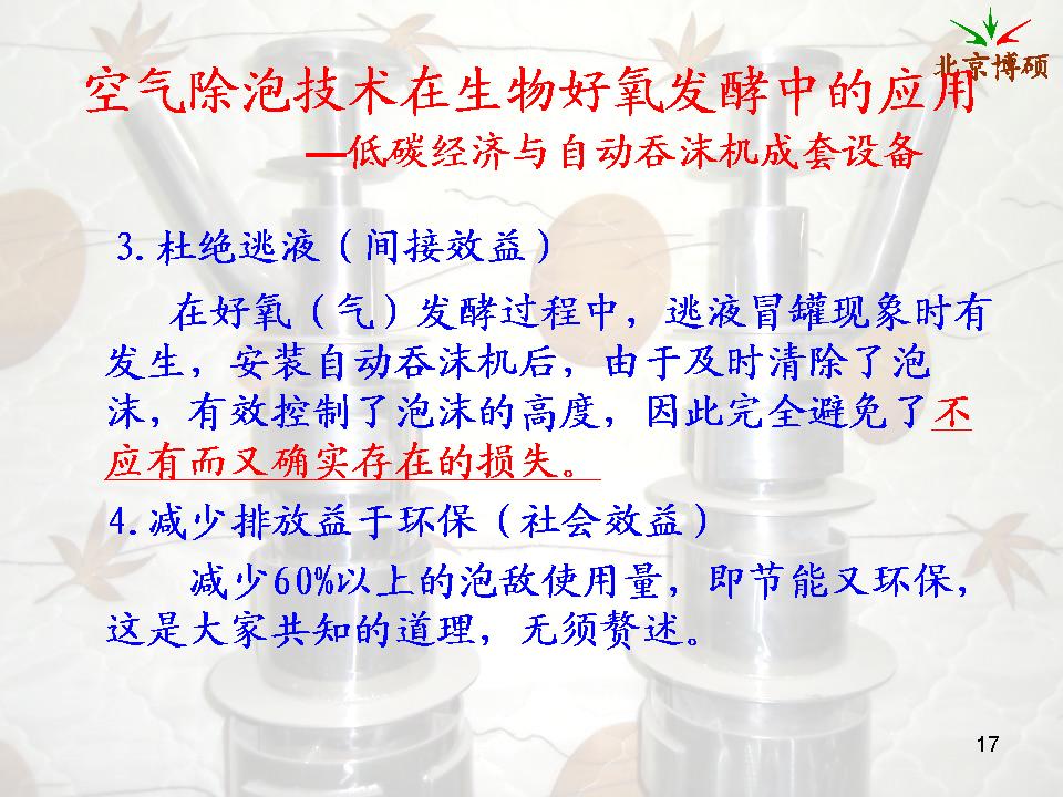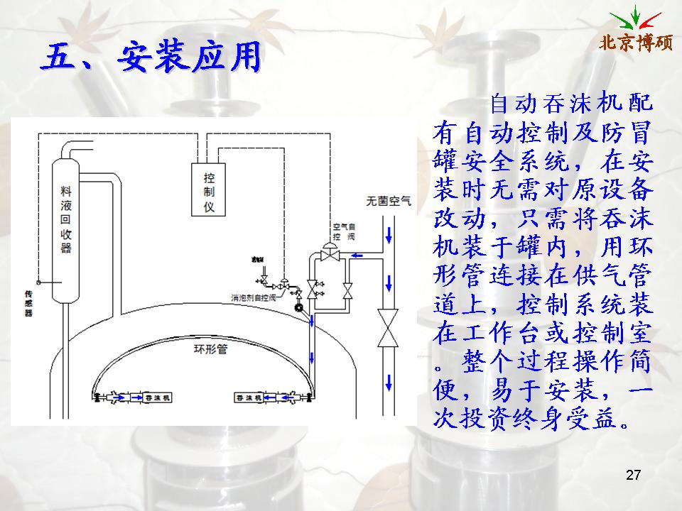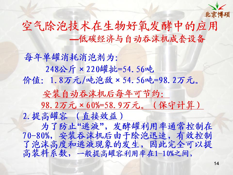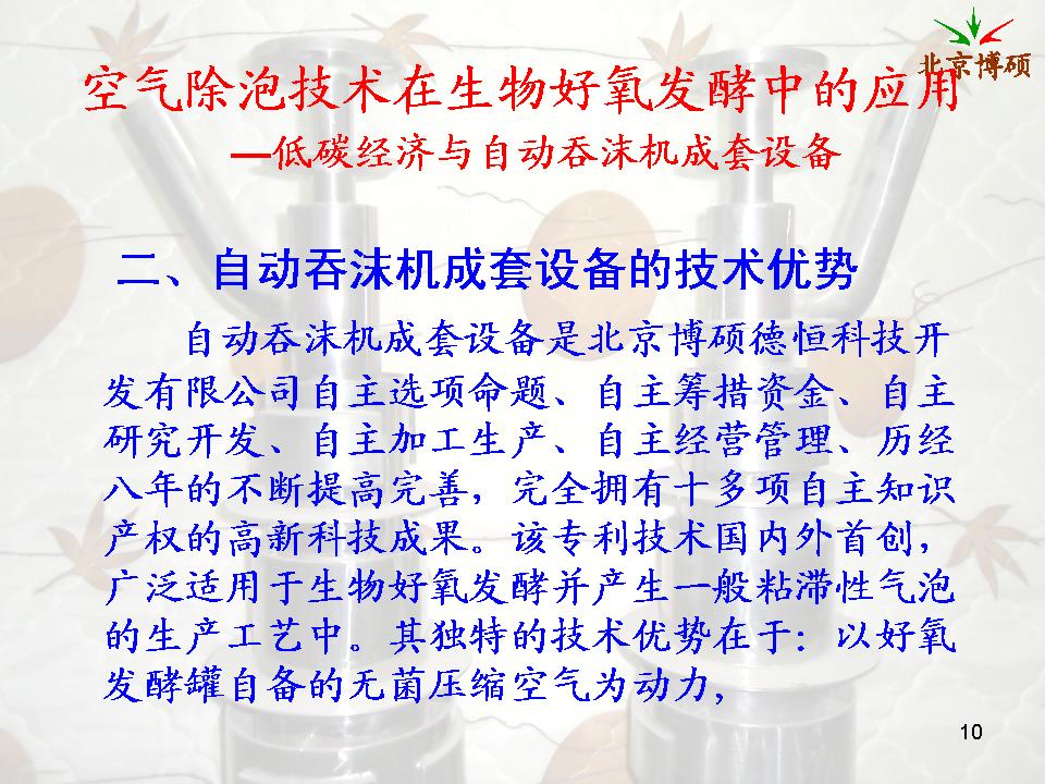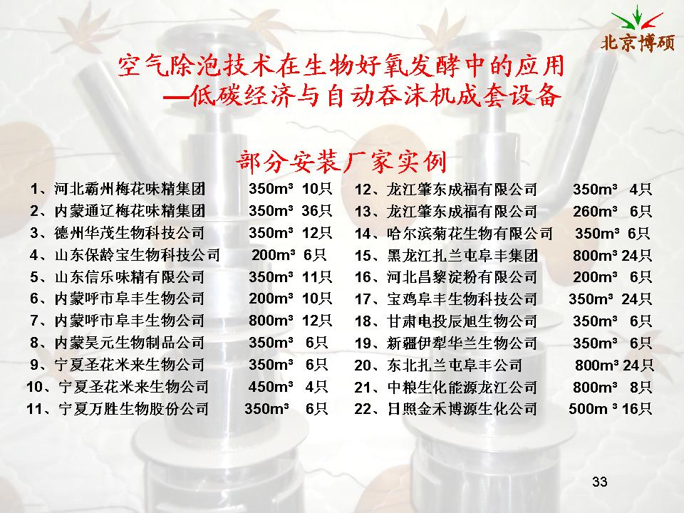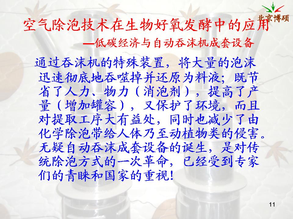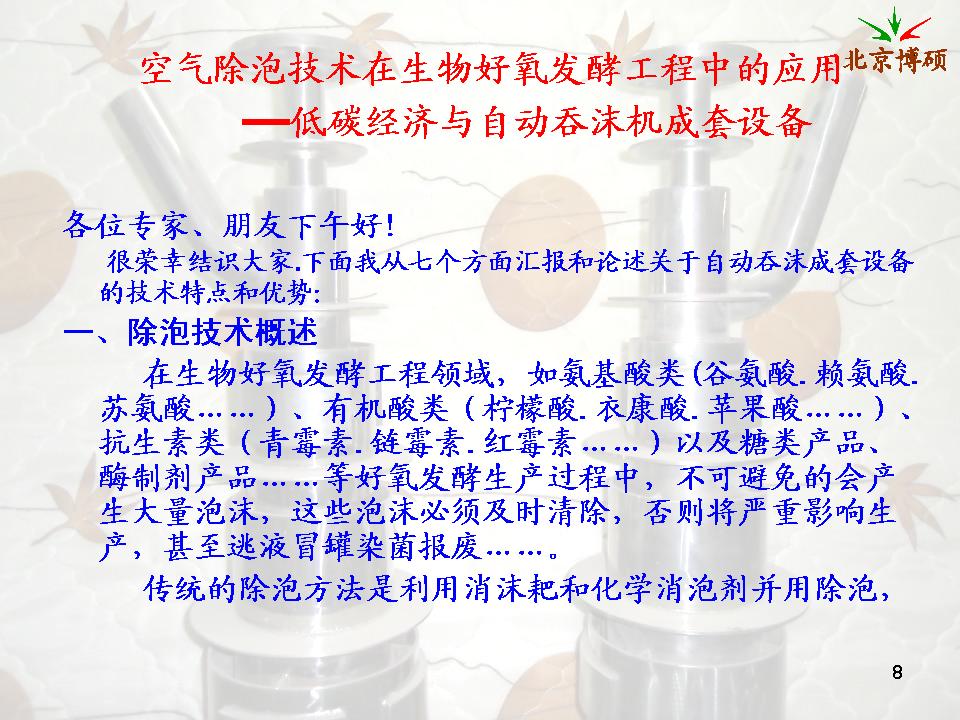 在当前国际市场和国内市场对产品质量和产品安全要求更加严格的今天,自动吞沫成套设备是一种在生物发酵工程行业项投资少、见效快、一劳永逸的高新技术产品。以下是北京博硕德恒科技开发有限公司总经理吕建军在2014首届中国国际制药工业环保发展论坛上的报告全文。