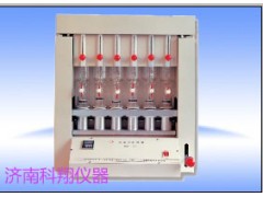 脂肪测定仪(脂肪仪、粗脂肪测定仪)(KX-06)系列脂肪测定仪是根据索氏抽提原理,用重量测定方法来测定样品的脂肪含量,测定结果均符合国家(GB/T5512-85)标准。KX-06系列脂肪测定仪设计合理、性能稳定、准确度高、操作省力、省时,各项指标均达到国内领先水平,是食品,油脂,饲料等行业测定脂肪的理想设备。 KX-06系列脂肪测定仪主要由加热浸泡抽提、溶济加收和冷却三大部分组成。操作时可以根据试剂沸点和环境温度不同而调节加热温度,试样抽提过程反复浸泡及抽提,从而达到快速测定的目的 型号:KX-06A测定范围:含油量在0.5%-60%范围内的粮食、饲料、油料及各种脂肪制品 测定样品:6个 电源电压:220V 频率:50HZ 电加热功率:800W 控温范围:室温+5C-90℃ 外形尺寸:570*330*655 重量:22KG